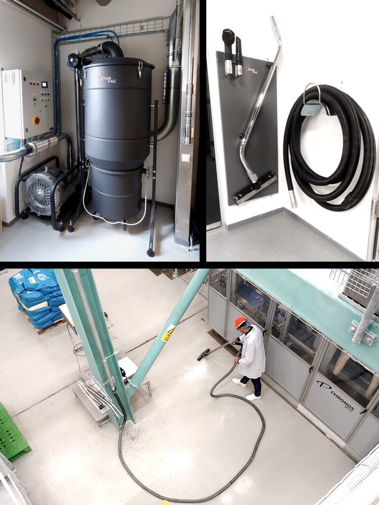Most dust types are potentially explosive, requiring a central vacuum system compliant with strict ATEX safety regulations